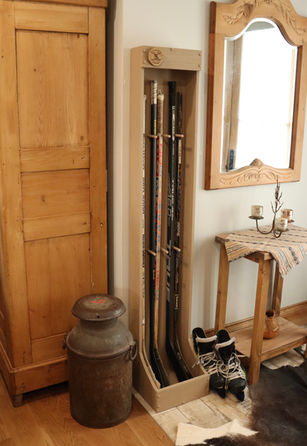 Clean up the clutter and organize your hockey gear with this custom-built solid wood organizer that holds up to 8 regular sticks.